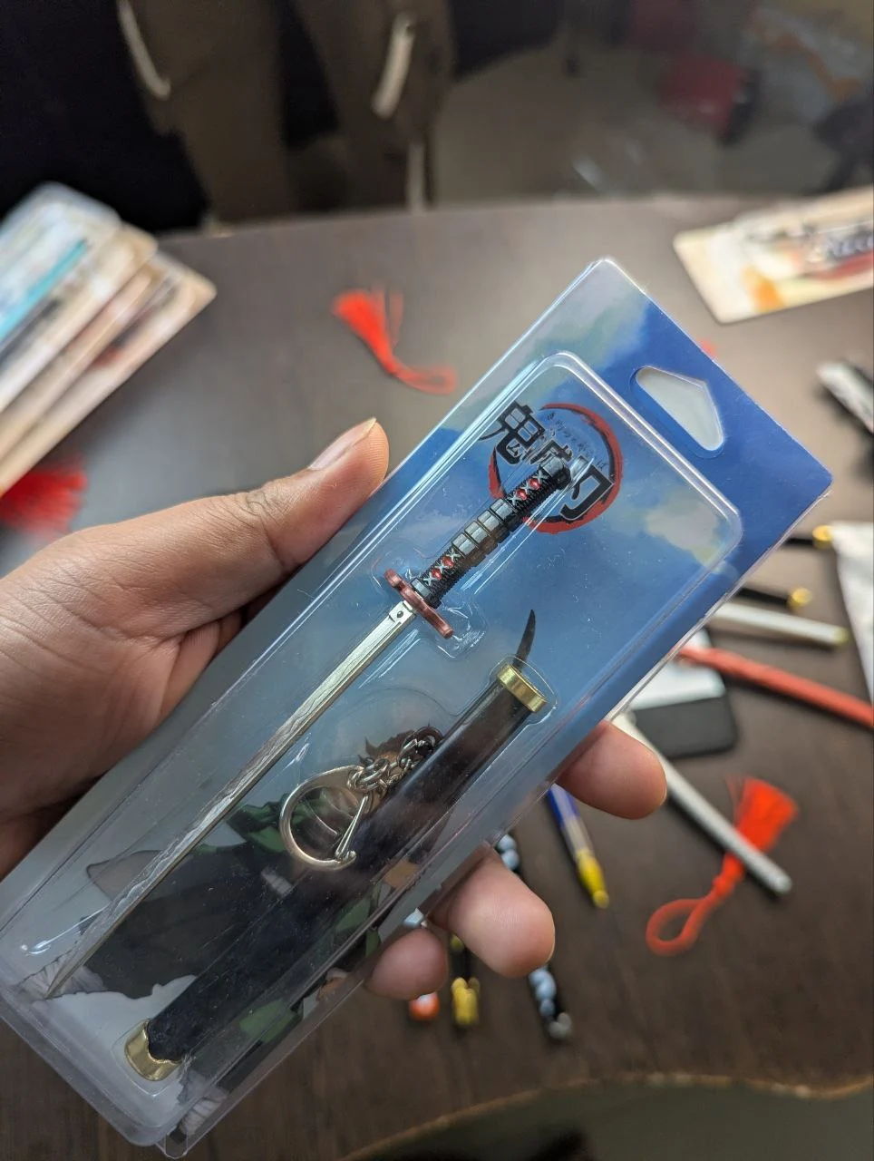 Bring a piece of anime flair with you everywhere! This 15 cm mini katana is crafted from durable metal alloy for a solid, polished look that feels great in your hand. Designed for comfort and everyday carry, it hangs effortlessly on your keys, bag.